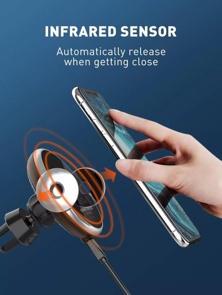 - شاحن لاسلكي يمكنك شحن الجوال بمجرد تثبيته على الحامل