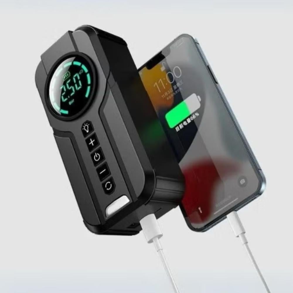 -اشتراك سيارة ومشغل لبطارية السيارة منفاخ هواء للإطارات بقوة ضغط 150PSI باور بانك بطارية متنقلة بسعة 6000 ملي امبير مدة الشحن 4-5 ساعات -مزودة بشاشة عرض رقمية ذكية تعرض حالة البطارية بشكل دقيق. -بطارية عالية الامان ومقاومة لدرجة الحرارة المنخفضة.