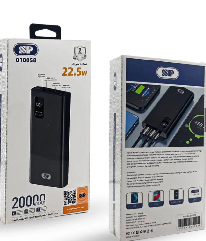 مواصفات باور بانك 20000 (PD 18W + <> منافذ USB) مع شاشة لمعرفة مقدار الشحن: