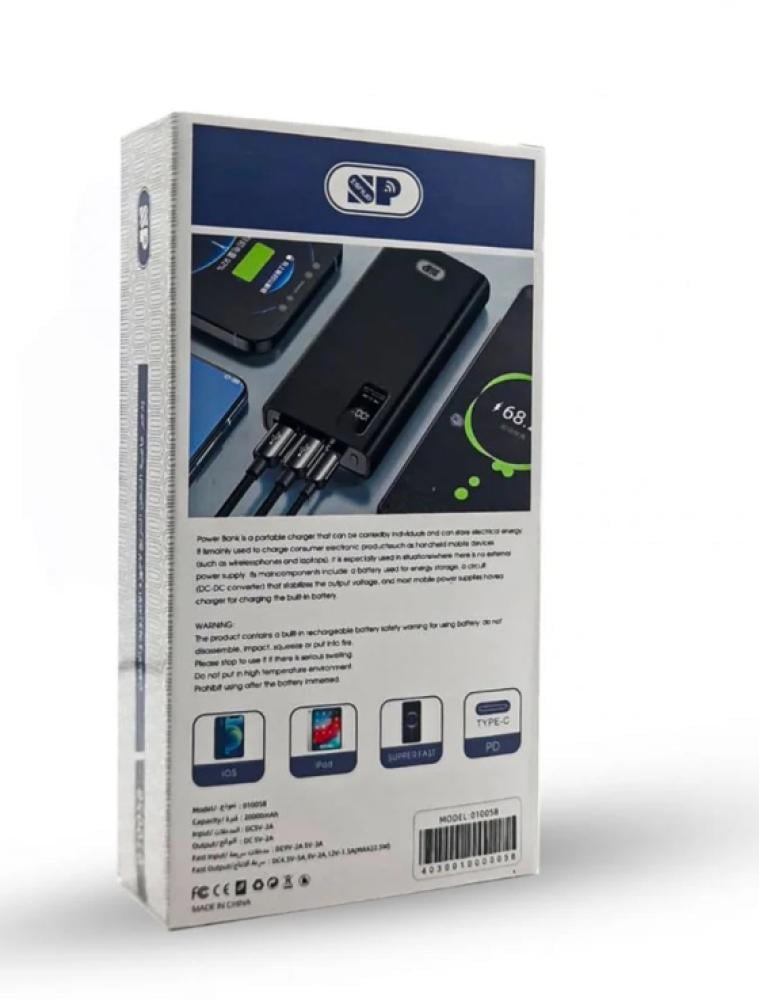 يعد Power Bank 20000 مع اتصال PD بقدرة 18 وات ومنافذ USB مزدوجة مفيدا جدا للأشخاص الذين يستخدمون الأجهزة الإلكترونية أثناء التنقل. يوفر طاقة كافية لشحن الهواتف الذكية والأجهزة اللوحية عدة مرات. يأتي بتصميم مدمج وخفيف الوزن ، مما يجعله مريحا للحمل في الجيوب والحقائب. بالإضافة إلى ذلك ، يتميز بنك الطاقة هذا بالشحن السريع ، مما يوفر سرعة شحن فائقة السرعة لأجهزة iPhone و Android.