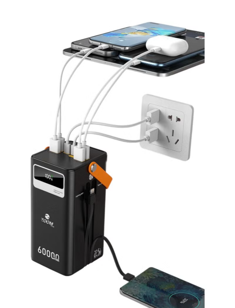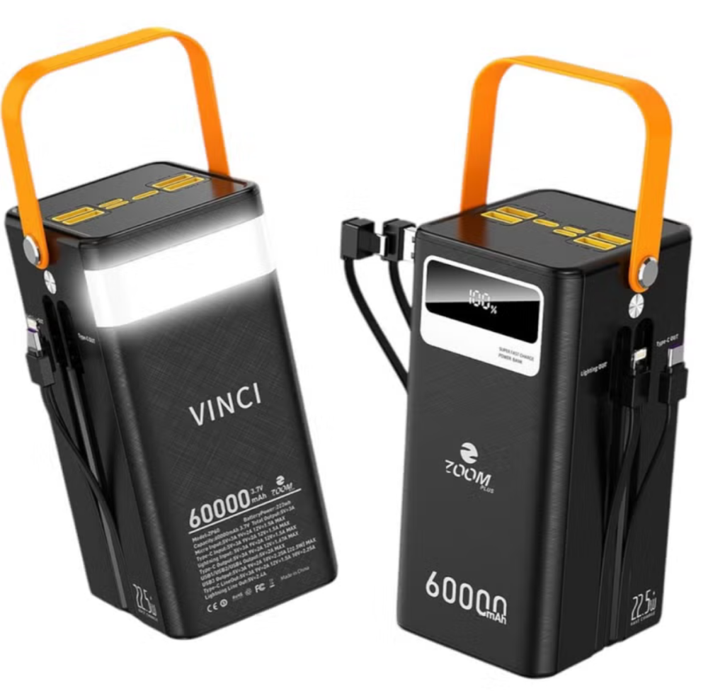 • 【بنك طاقة بسعة كبيرة 60,000 مللي أمبير/ساعة】 يتميز هذا الشاحن المحمول بسعة طاقة هائلة تبلغ 60,000 مللي أمبير/ساعة، تكفي لشحن معظم الهواتف لأكثر من 10-15 مرة أسبوعيًا. مثالي لحالات الطوارئ المنزلية، والسفر العائلي، والتنزه مع الأصدقاء، والتخييم في الهواء الطلق، وغيرها الكثير.